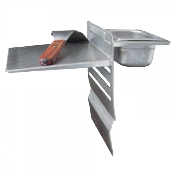 BK Resources, GCP-2S-9P, GrillCook Pro Upright Shelf Stand, 12" Shelf, & 1/9 Pan Holder, medium, 12" wide, universal, stainless steel, fits on grill/griddle splashes or equipment stand risers