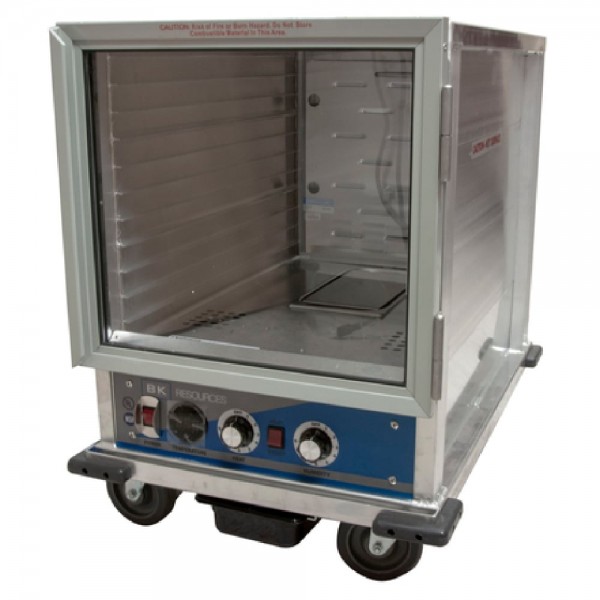 BK Resources, HPC2N, Proofer/Heater Cabinet, mobile, non-insulated, half size, holds (10) 18" x 26" pans, 270°-swing removable door, LED thermostat, dual heat/proof control, Proof Mode: up to 115°F temperature & 30 - 95% humidity, Heat Mode: up to 185°F temperature, 120v/60/1-ph, 1.5kW, cord with NEMA 5-15P, NSF, UL