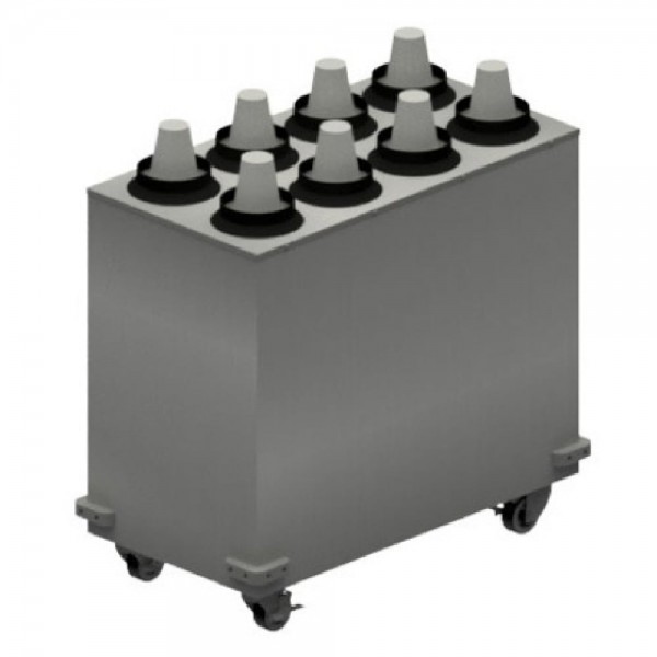 BK Resources, MCD-4X2, Mobile Cup Dispenser, 17-1/2"W x 33"D x 31"H, (8) total dispensers (2 rows of 4), accepts 8 oz to 46 oz size cups, 18/304 stainless steel cabinet, bumper guards, (4) swivel casters with locks, NSF