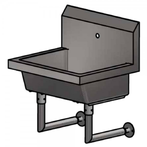 BK Resources, MSHS-24W1, Single Station Handwash Sink, wall mounted, single hole splash mount faucet hole, 24"W x 19-7/8" front-to-back x 8" deep bowl, 14/304 stainless steel sink, basket drain, 18 gauge stainless steel legs & supports, NSF (3-5 day lead time)