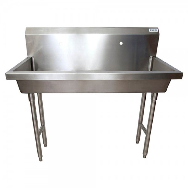 BK Resources MSHS-48F1 Two Station Handwash Sink Freestanding (2) Single Hole Splash Mount Faucet Holes