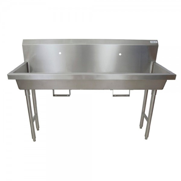 BK Resources MSHS-60F1B Two Station Handwash Sink Freestanding (2) Single Hole Splash Mount Faucet Holes