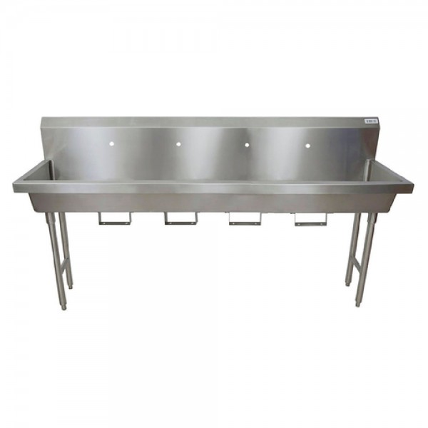 BK Resources MSHS-96F1B Four Station Handwash Sink Freestanding (4) Single Hole Splash Mount Faucet Holes