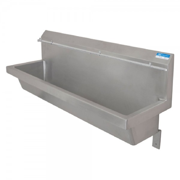 BK Resources, MSU-96PG, Urinal, wall mount design, 96", full length sloping backsplash, with flush pipe, includes wall mounting brackets & basket drain, 14/304 stainless steel