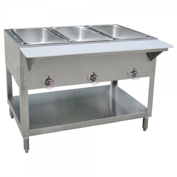 BK Resources, STE-NG-3, Hot Food Table, natural gas, (3) wells, with cutting board shelf, stainless steel, adjustable undershelf, 3,500 BTUs per burner