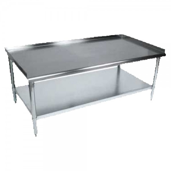 Introducing the BK Resources SVET-6030 Equipment Stand, a versatile and reliable addition to your commercial kitchen. With its spacious 61" x 30" dimensions and durable 18/430 stainless steel top, reinforced with 1-1/2" square tubing, this equipment stand provides ample room for all your essential tools and equipment. Featuring a 2" 90° up-turn on the sides and back, this equipment stand is designed to keep your workspace clean and organized, while the stainless steel adjustable undershelf and legs offer maximum stability and support.