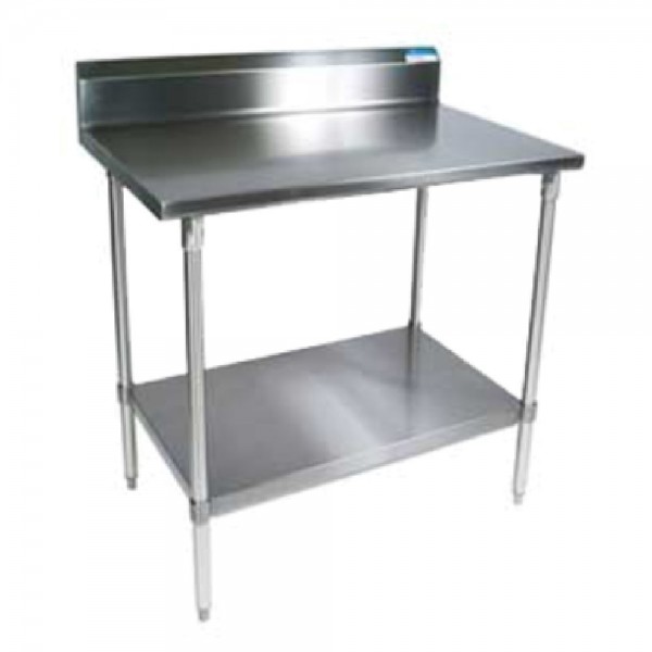 BK Resources, SVTR5-7224, Work Table, 72"W x 24"D, 18/430 stainless steel top, with turndown edges on front & sides, reinforced with channels, 5" backsplash, adjustable stainless steel undershelf, 1-5/8" dia. stainless steel legs, stainless steel bullet feet, NSF