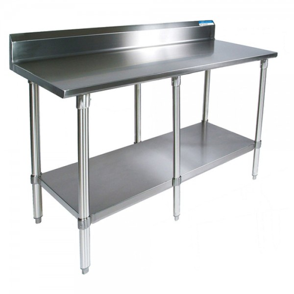 The 5" backsplash helps keep your workspace clean and tidy, while the adjustable stainless steel undershelf offers additional storage space for your tools and supplies. The BK Resources SVTR5-8430 Work Table also features (6) 1-5/8" dia. stainless steel legs and stainless steel bullet feet, making it sturdy and rust-resistant. It has been NSF certified, meaning it meets the highest standards for safety and sanitation in the industry.