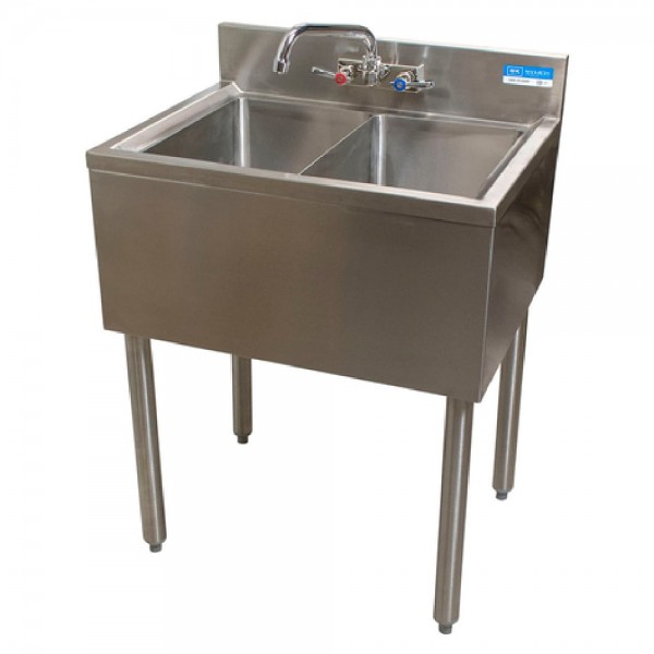 BK Resources UB4-18-224S Slim-Line Underbar Sink Two Compartment 24”W X 18-1/4"D X 32-1/2"H Overall Size