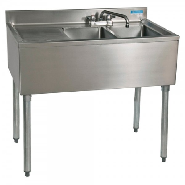 BK Resources UB4-18-236LS Slim-Line Underbar Sink Two Compartment 36”W X 18-1/4"D X 32-1/2"H Overall Size