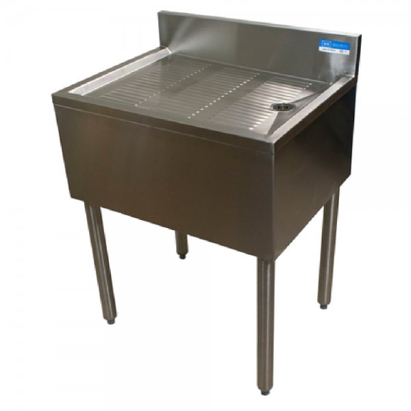BK Resources, UB4-18-DB30, Underbar Drain Board, 30"W x 18"D x 32-1/2"H, 18/304 stainless steel, stamped drainboard, drain included (BKDR-15CP), stainless legs & side bracing, adjustable high impact corrosion resistant feet, NSF