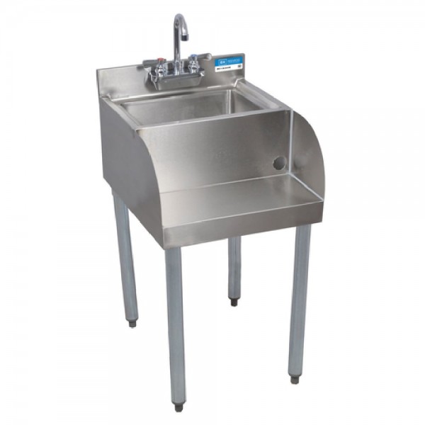 BK Resources, UB4-21-1410BSS-P-G, Blender Station, with dump sink, 18"W x 21-1/4"D, 14" wide x 10" front-to-back 6" deep sink bowl with 1-1/2" drain, 4" OC splash-mounted, lead-free faucet (BKF-W2-3G-G), 17-3/4"W x 5"D blender station shelf, stainless steel legs & side bracing, adjustable high impact corrosion resistant feet, 18 gauge 304 stainless steel top, NSF