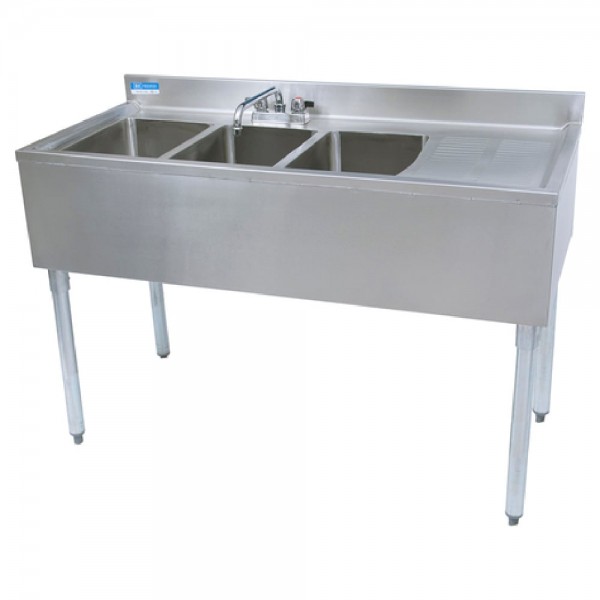 BK Resources UB4-21-348RS Underbar Sink Three Compartment 48”W X 21-1/4"D X 32-1/2"H Overall Size