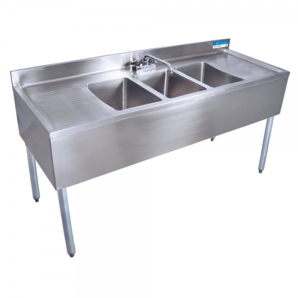BK Resources UB4-21-384TS Underbar Sink Three Compartment 84”W X 21-1/4"D X 32-1/2"H Overall Size