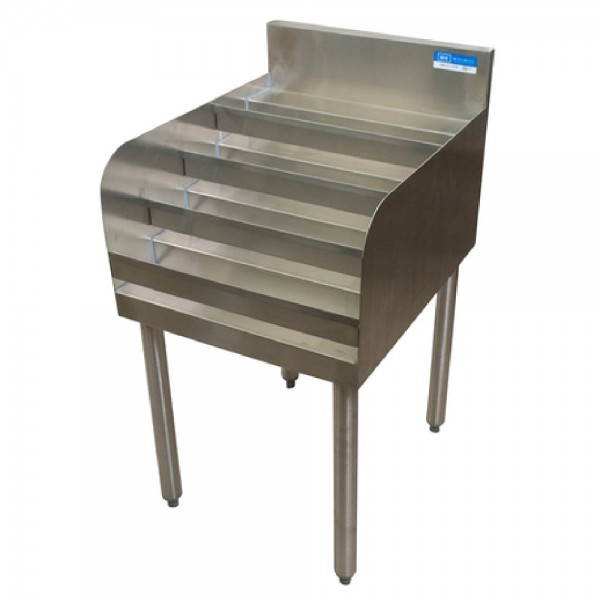 Its 1-5/8" diameter stainless steel legs and side crossbracing ensure stability, while the adjustable plastic bullet feet make it easy to level on any surface. With NSF certification, you can rest assured that this unit meets the highest standards of quality and safety. Whether you're a bar owner, mixologist, or simply a lover of fine spirits, the BK Resources UB4-21-LD24 Underbar Liquor Bottle Display Unit is the perfect addition to your collection.