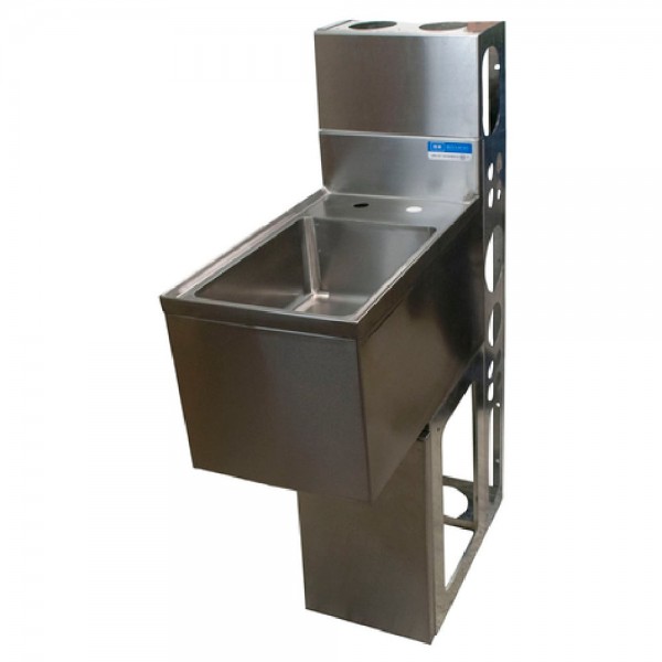 Introducing the BK Resources UBDW-18-1014HS Underbar Dump Sink, the perfect addition to your commercial kitchen. This highly functional sink measures 14-1/2"W x 18-1/4"D x 33-1/2"H overall, making it the ideal size for underbar use. The sink features a spacious 10" wide x 14" front-to-back x 6" deep bowl that can easily accommodate a variety of dishes and utensils. Crafted from high-quality 18/304 stainless steel, this underbar dump sink is built to last.