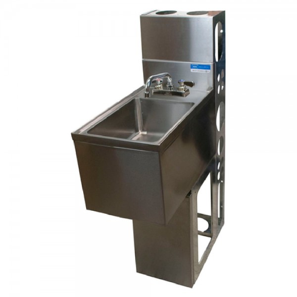 Introducing the BK Resources UBDW-18-1014HS12-P-G Underbar Dump Sink, the perfect solution for your commercial kitchen needs. With its compact size of 12"W x 18"D x 33-1/2"H overall size, this underbar dump sink is designed to fit seamlessly into any tight space. The 10" wide x 14" front-to-back x 6" deep bowl is perfect for dumping excess waste and cleaning utensils, while the 4" OC splash mount lead-free faucet (BKF-W2-6-G) provides easy access to clean water.