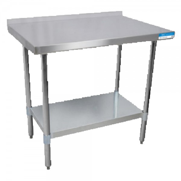 BK Resources, VTTR-1860, Work Table, 60"W x 18"D, 18/430 stainless steel top, with turndown edges on front & sides, reinforced with channels, 1-1/2" rear riser, adjustable galvanized undershelf, 1-5/8" dia. galvanized legs, adjustable high-impact corrosion-resistant feet, NSF