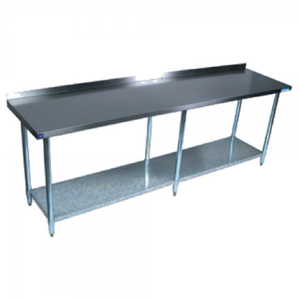BK Resources, VTTR-1884, Work Table, 84"W x 18"D, 18/430 stainless steel top, with turndown edges on front & sides, reinforced with channels, 1-1/2" rear riser, adjustable galvanized undershelf, 1-5/8" dia. galvanized legs, adjustable high-impact corrosion-resistant feet, NSF