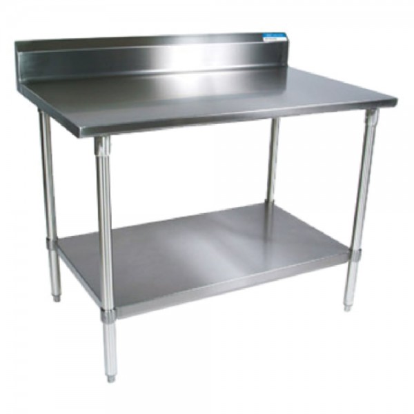 Introducing the BK Resources VTTR5-7230 Work Table - the perfect addition to any commercial kitchen. Crafted from durable 18/430 stainless steel, this work table boasts a spacious 72"W x 30"D top with turndown edges on the front and sides, reinforced with channels for added strength. The 5" backsplash keeps spills and messes contained, while the adjustable galvanized undershelf provides ample storage space. The table is supported by sturdy 1-5/8" diameter galvanized legs, which are adjustable for added convenience.