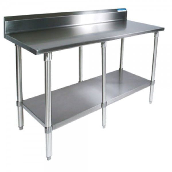 BK Resources, VTTR5-8424, Work Table, 84"W x 24"D, 18/430 stainless steel top, with turndown edges on front & sides, reinforced with channels, 5" backsplash, adjustable galvanized undershelf, 1-5/8" dia. galvanized legs, adjustable high-impact corrosion-resistant feet, NSF