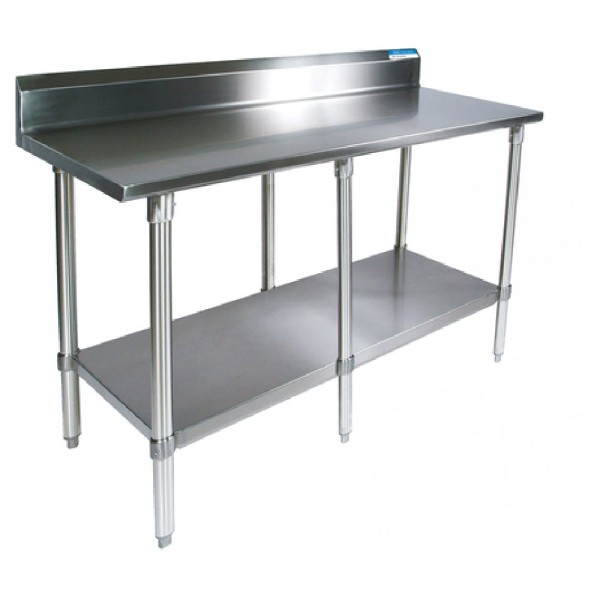 BK Resources, VTTR5-9630, Work Table, 96"W x 30"D, 18/430 stainless steel top, with turndown edges on front & sides, reinforced with channels, 5" backsplash, adjustable galvanized undershelf, (6) 1-5/8" dia. galvanized legs, adjustable high-impact corrosion-resistant feet, NSF