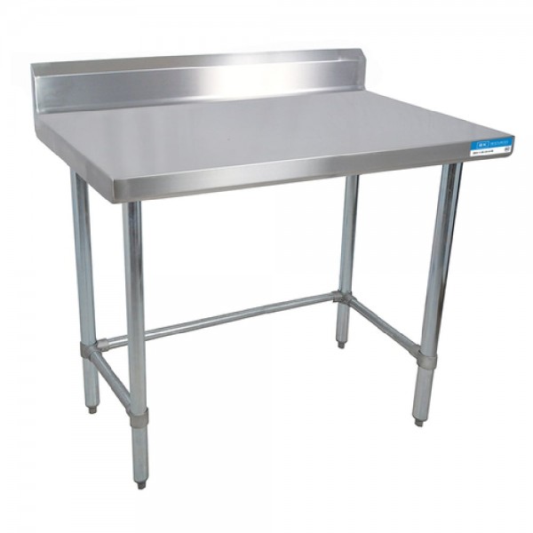 BK Resources, VTTR5OB-7230, Work Table, 72"W x 30"D, 18/430 stainless steel top, with turndown edges on front & sides, reinforced with channels, 5" backsplash, open base with galvanized side & rear bracing, 1-5/8" dia. galvanized legs, adjustable high impact corrosion resistant feet, ships KD, NSF