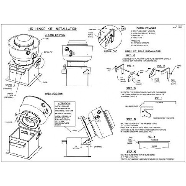 - Includes left and right fan plates, left and right curb plates, and hardware to attach hinge to curb and hinge to base. Ships Loose