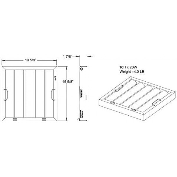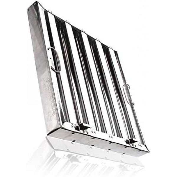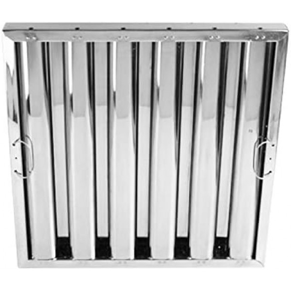 Captive Aire Stainless Steel Restaurant Hood Filter. This UL listed filter is designed for commercial kitchen exhaust hoods. Constructed of stainless steel which provides durability and corrosion resistance and is lightweight for easy installation and removal from the hood. It includes two snap in handles and bottom hanging hooks to fit many different hood manufacturers.