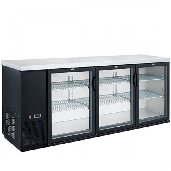 The Dukers DBB72-H3 under bar refrigerator is designed to chill and organize beer, soda, juice, and drink mixers in a convenient space-saving cabinet. Featured in a large 73 in. size and three doors, double pane tempered glass block UV light to safely keep all types of drinks ready to serve. Constructed of commercial-grade body panels in black textured finish to fit all decors and living spaces. Precision digital temperature controls allow pinpoint accuracy with temperatures from 33-38"F. Includes 6 adjustable and removable wire shelves.