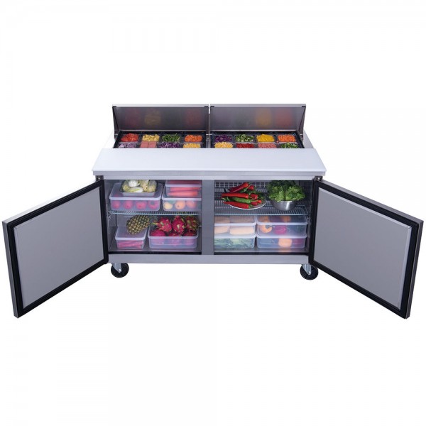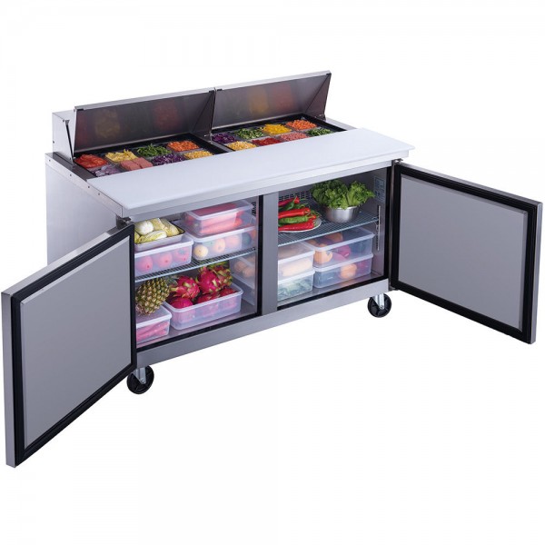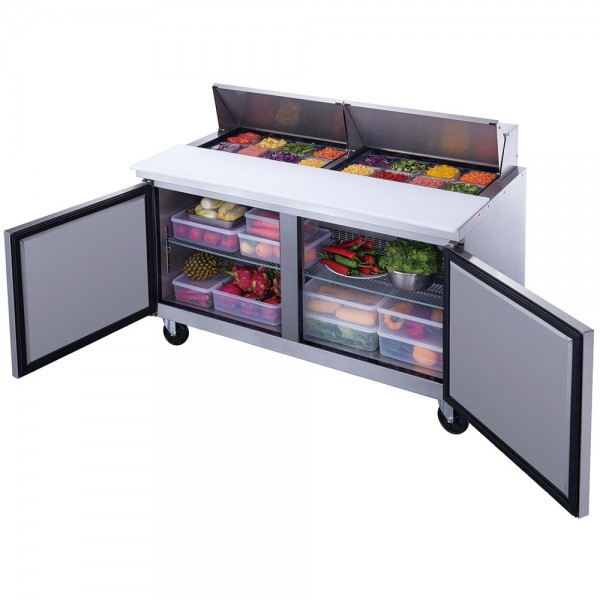 Dukers DSP60-16-S2 60" Double Door Regular Top Refrigerated Salad Prep Table