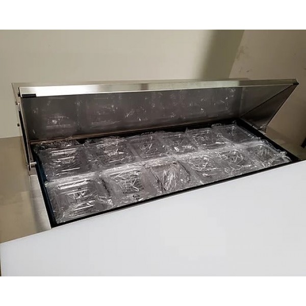 - Cold air loops on both bottom and the top surface of the pans, Top holds up to (12) 1/6 size, 6" deep food pans (with pans)