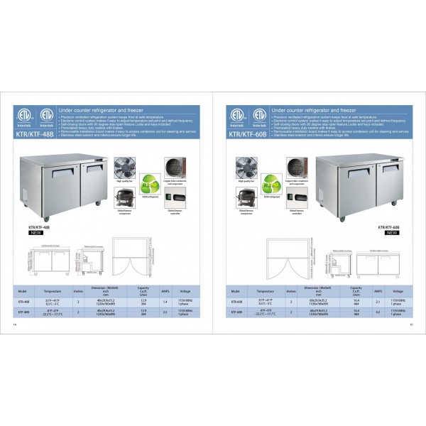 Eqchen KTF-48B, Commercial 48" Undercounter Worktop Freezer 12.9 cu.ft. NSF