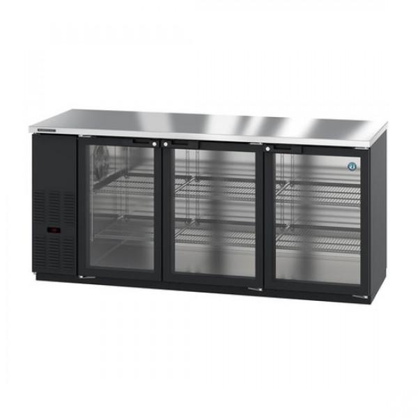 Hoshizaki BB80-G 80" Black Vinyl Back Bar Cooler with 3 Locking Swinging Glass Doors - 27 Cu. Ft.