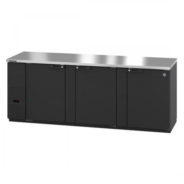 Hoshizaki BB95 95" Black Vinyl Back Bar Cooler with 3 Locking Swinging Solid Doors - 33 Cu. Ft.