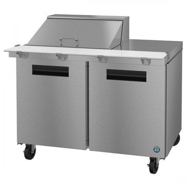 Hoshizaki SR48A-12M 48" Steelheart Series Two-Section Mega Top Prep Refrigerator with 2 Stainless Doors & 12 Pan Capacity - 14 Cu. Ft.
