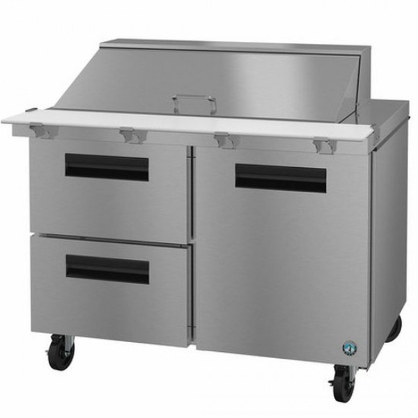 Hoshizaki SR48A-18MD2 48" Steelheart Series Two-Section Mega Top Prep Refrigerator with Door and 2 Drawers - 14 Cu. Ft.