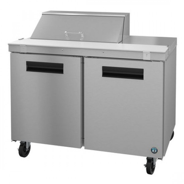 Hoshizaki SR48A-8 48" Steelheart Series Two-Section Sandwich Top Prep Table Refrigerator with 2 Stainless Doors & 8 Pan Capacity - 14 Cu. Ft.