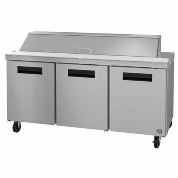 Hoshizaki SR72A-18 72" Steelheart Series Three-Section Sandwich Top Prep Table Refrigerator with 3 Stainless Doors & 18 Pan Capacity - 21 Cu. Ft.