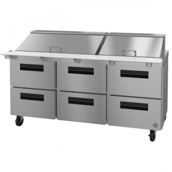Hoshizaki SR72A-30MD6 72" Steelheart Series Three-Section Mega Top Refrigerator with 6 Drawers - 21 Cu. Ft.