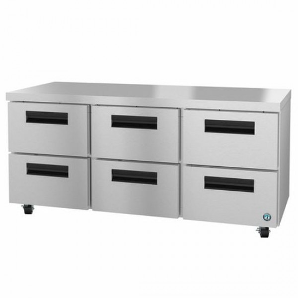 Hoshizaki UR72A-D6 72" Steelheart Series Three-Section Undercounter Refrigerator with 6 Drawers - 21 Cu. Ft.