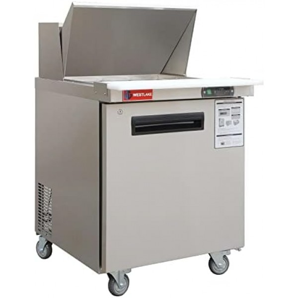 Mega Top Sandwich Prep Table Refrigerator, WESTLAKE 1 Door 27" Mega Top Salad Sandwich Prep Table with 12 Pans