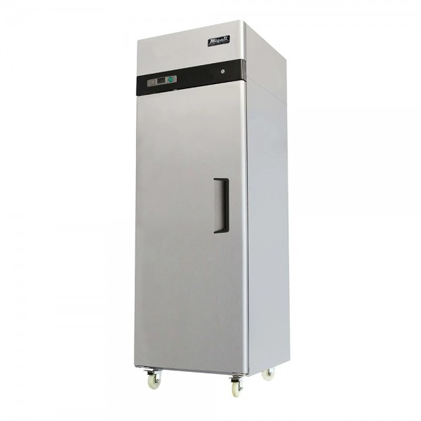 Perfect for that back beer freezer which every speakeasy requires. Migali commercial one door reach-in freezer is an ideal choice for storing all your favorite foods. Whether it's beers, precooked or par-cooked, excess or leftovers, this freezer takes in all. It comes with a capacity of 23 cubic"es, together with spacious cabinets and adjustable shelves. Less heat-producing LED bulbs, help you find the items without a hitch. Easier to clean bottom mount compressor provides power for hot kitchen environments. The freezer is entirely made of stainless steel along with embedding on the inside of door lines. To give this unit, one heck of strength and integrity, 2-" foamed in place polyurethane is used for insulation on the interior of the box for prevention of heat loss. The whole unit has a programmable controller featuring condenser cleaning alerts, temperature controls, choice of unit measures, and more.