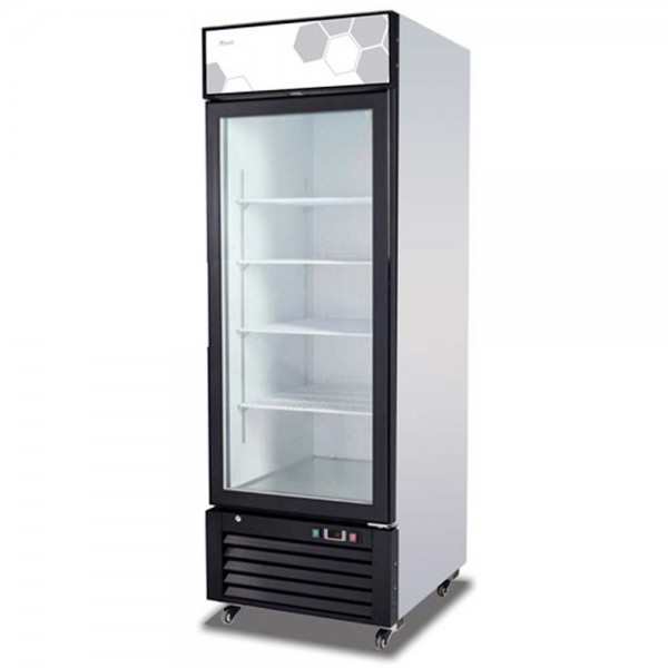 Boost your store's sales and entice your shoppers by flaunting all savories being it subs, sandwiches, or canapes in Migali's one glass door merchandiser with interior space of 23 cubic feet along with four adjustable shelves. The freezer comes with one swing door that can stay open at 90 degrees for the time when your store employee is working stocking up it back with mouth-watering delicacies and sparkling beverages. The emblazon panel over the top of the merchandiser attracts the eye of the customer and LED bulbs shine on the display products which could be looked clearly at via double pane low E glass door. The digital temperature control lets you set any temperature between -10 to 0 degrees Fahrenheit and doors could be locked for securing against burglars. This unit is environmentally friendly because of the use of special hydrocarbon refrigerants.