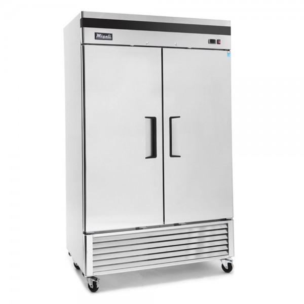 Be it either for a celebrity chef's kitchen or your personal small cozy restaurant, Migali two door commercial reach-in refrigerator, is an ideal choice for storing all your favorite foods. Whether precooked or par cooked, excess or leftovers, this refrigerator takes in all. It comes with capacity of 49 cubic"es, together with spacious cabinets and adjustable shelves. Less heat producing LED bulbs, helps you find the items without a hitch. Easier to clean bottom mount compressor provides power for hot like volcanic lava kitchen environments. The refrigerator is entirely made of stainless steel along with the embedding on inside of door lines. To give this unit, one heck of strength and integrity, 2-" foamed in place polyurethane is used for insulation on both mullian and extrinsic of box for prevention of heat loss. The door can stay open at 90 degrees along with periodic alerts so that tushy won't need to step in for putting in work. The whole unit has a programmable controller featuring condenser cleaning alerts, temperature controls, choice of unit measures and more.