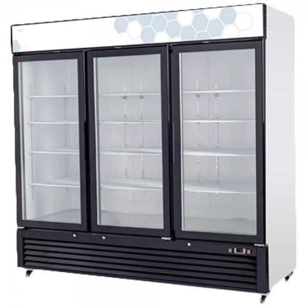 Boost your store's sales and entice your shoppers by flaunting all savories being it subs, sandwiches or canapes in Migali's merchandiser with interior space of 72 cubic feet along with four adjustable shelves. The cooler comes with a three doors that can stay open at 90 degrees for the time when your store boy is working his fingers to bone stocking up it back with mouth watering delicacies and sparkling beverages. The emblazon panel over the top of the merchandiser attracts the eye of the customer and LED bulbs shine on the display products which could be looked clearly to via double pane low E glass door. The digital temperature controller lets you set any temperature between 33-41 degrees Fahrenheit and doors could be locked for securing against burglars. This unit is environmentally friendly because of the use of special hydrocarbon refrigerant