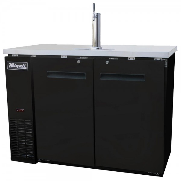 Thinking of expanding business by adding draft beer to your serve list? But don't how. We got a answer for you. Introduce migali's direct draw beer cooler to your bistro today and serve chilled beer. This 48" small single tap direct draw beer dispensing unit has a capacity to hold two barrel kegs keeping your beer fresh and cold. The unit features air tubes to refrigerate the beer towers and comes with two solid door to load and unload the kegs and clean it for accidental spills. It has a side mounted compressor with hydrocarbon refrigerant. The doors has recessed handle with beautiful black exterior and a stainless steel top making it a elegant choice for your bachelor pad.