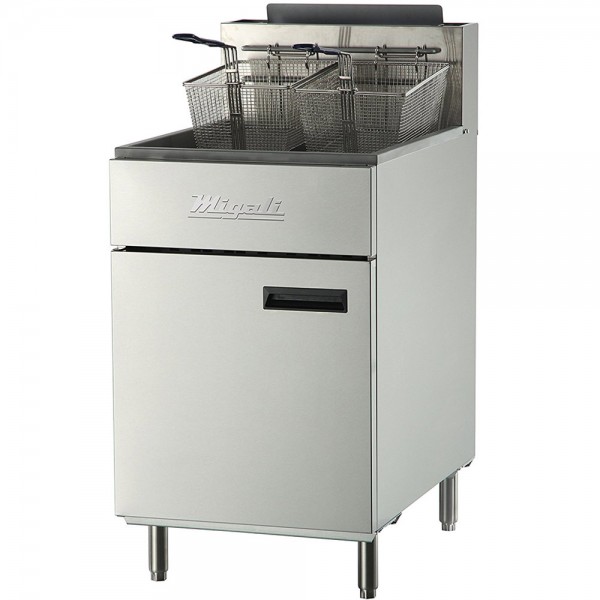 Every chef owes the flawless fryer to each and every single piece of french fry which has never let down the man who eats them. Your kitchen is the destination of Migali's flawless gas fryer. It features frying tank which holds nearly 75 lb oil capacity. The unit comes along the two wire mesh chrome baskets with hangers. Temperature controlling thermostat is equipped which allows to customize temperature up to 400 degrees Fahrenheit. This gas fryer has ergonomic stainless steel exterior with recessed handles and steel adjustable legs. Woo your customers, neighbors, kitty party ladies with the delicious and finger licking deep fried shrimps, potato fries, chicken patties, mozzarella sticks and many more.
