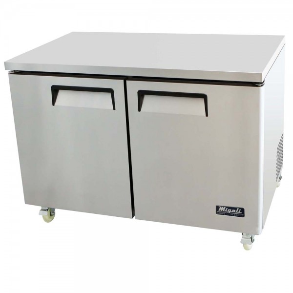 Whether you want to entertain the guest or clients came for personnel meeting or want to save a space in one studio apartment. Migali's under counter freezer fits all the situations. This unit is designed for compact small kitchens and personalized offices so lack of space won't be a catastrophe for you anymore. The unit features a digital temperature controller and reader for setting the uniform temperature for keeping the 30" deep base cold. This also has 48" worktop surface made of heavy duty stainless steel and a beautifully designed two solid door with the recessed handles. The inside cabinet features the same durable stainless steel along with adjustable epoxy shelf. The self-closing door could be held at 90 degree for loading and unloading of the contents. The unit is preset to defrost although the settings could manually be programmed according to requirements.