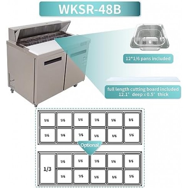 Sandwich Prep Table Refrigerator, WESTLAKE WKSR-48B 2 Door 48" Salad Sandwich Prep Table with 12 Pans